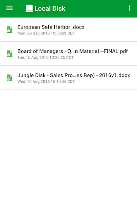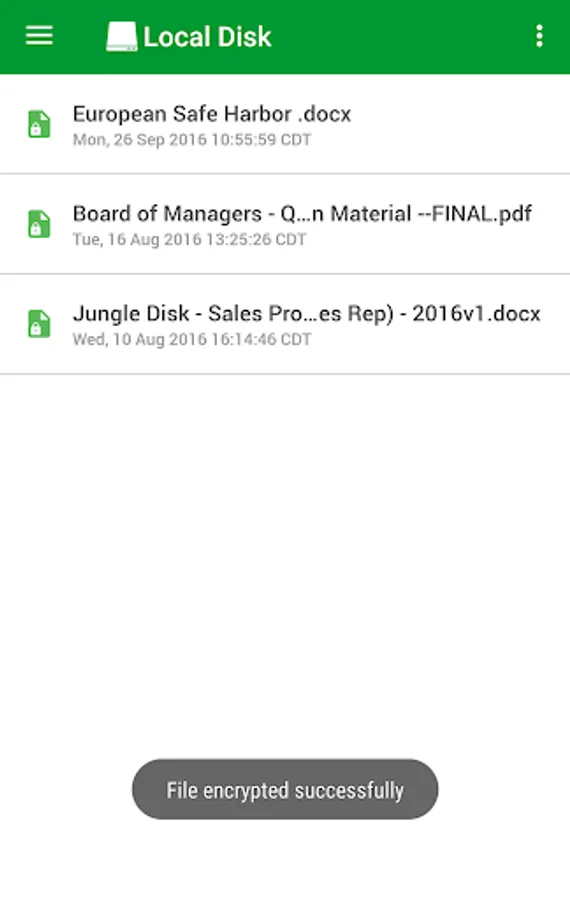 • It's Easy to Use: The Jungle Disk app makes it easy to download files to a local disk on your device, rename your files, delete and share your files all on the go.