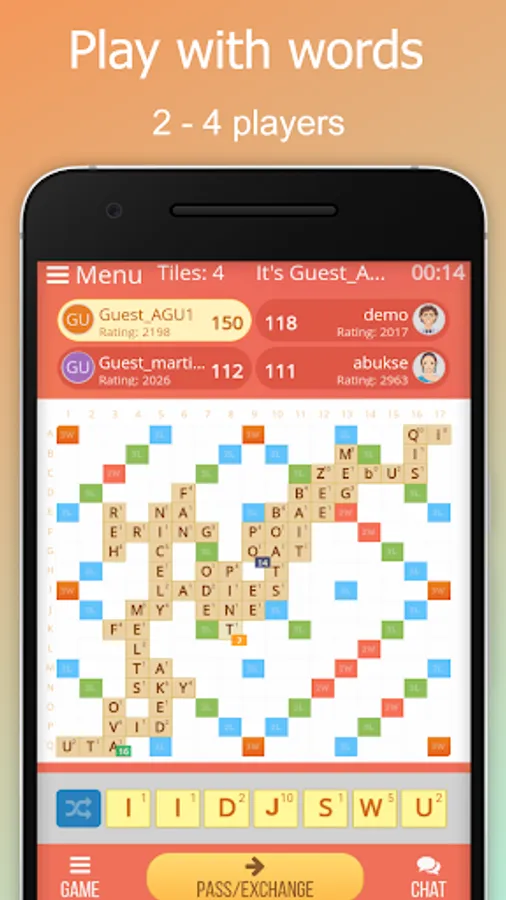 Compete against up to 4 players in fast games with time per turn ranging from 30 seconds to 2 minutes, enough to discourage cheaters.
