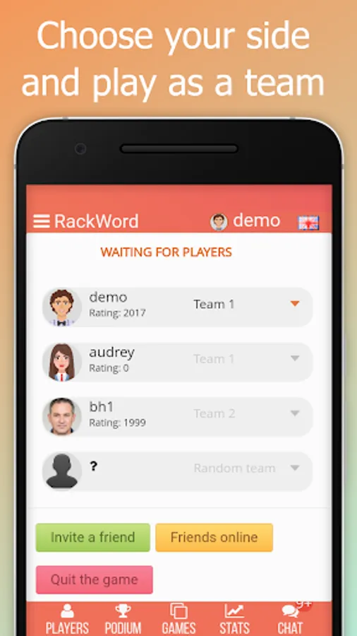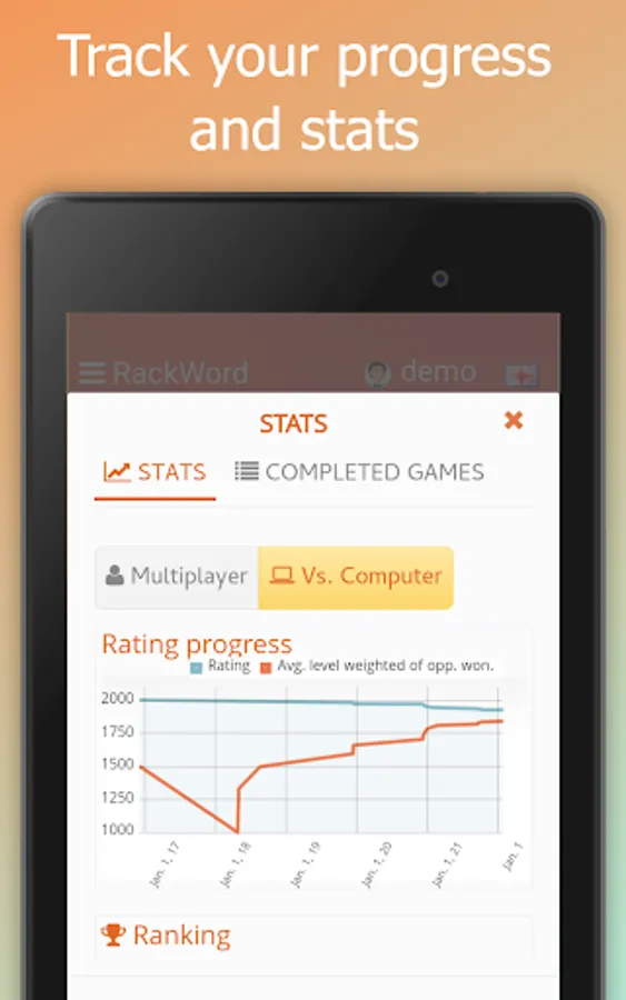 Rackword evaluates and computes your rating at the end of each game and allows you to compare yourself with your opponents.