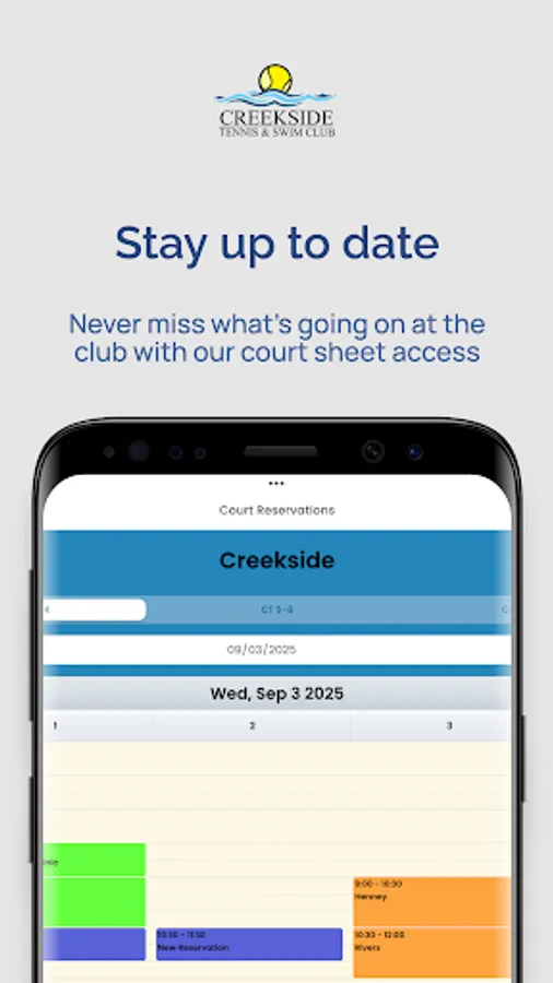 Enhance your club experience with the Creekside Tennis & Swim Club app, your all-in-one tool for managing court reservations, programs, and events.
