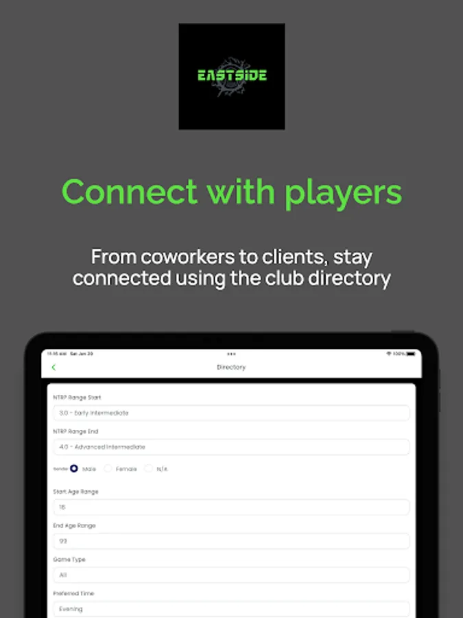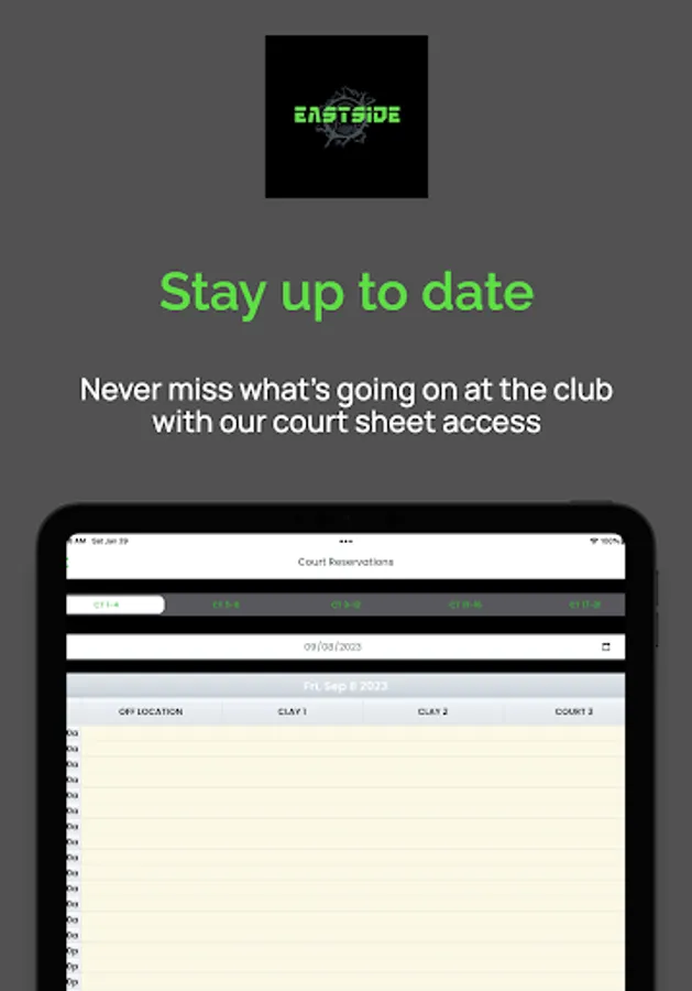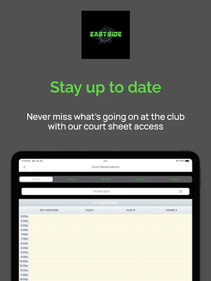 Welcome to the Eastside Tennis Club app, your ultimate companion for a seamless tennis experience! Our app is your one-stop destination for court management, reservations, and more