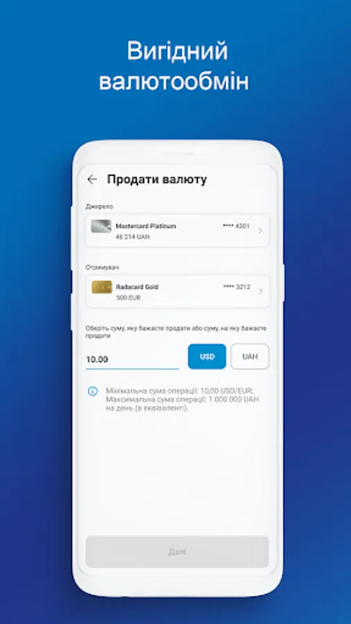 • Manage your cards (blocking, setting limits, restrictions on operations in other countries);
