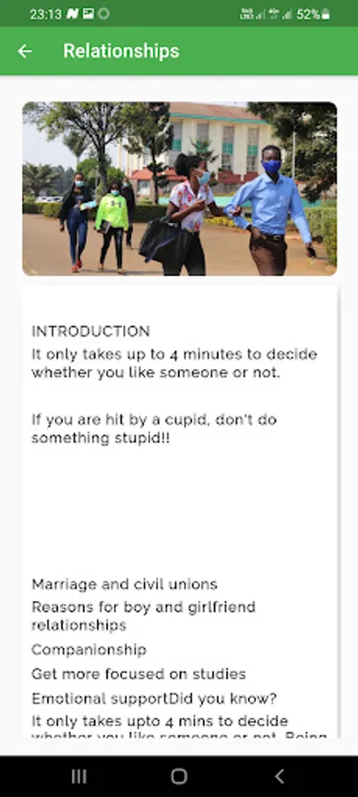 To make it more exciting, videos are incorporated, and contact information is provided at the end of each lesson to help young people who need it. Chats, forums, and counseling services are only available to University of Nairobi students.