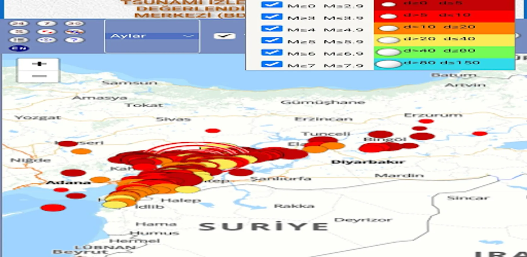 Also you can specify the data in different ways, for example, by seismic strength, distance from your location, depth.