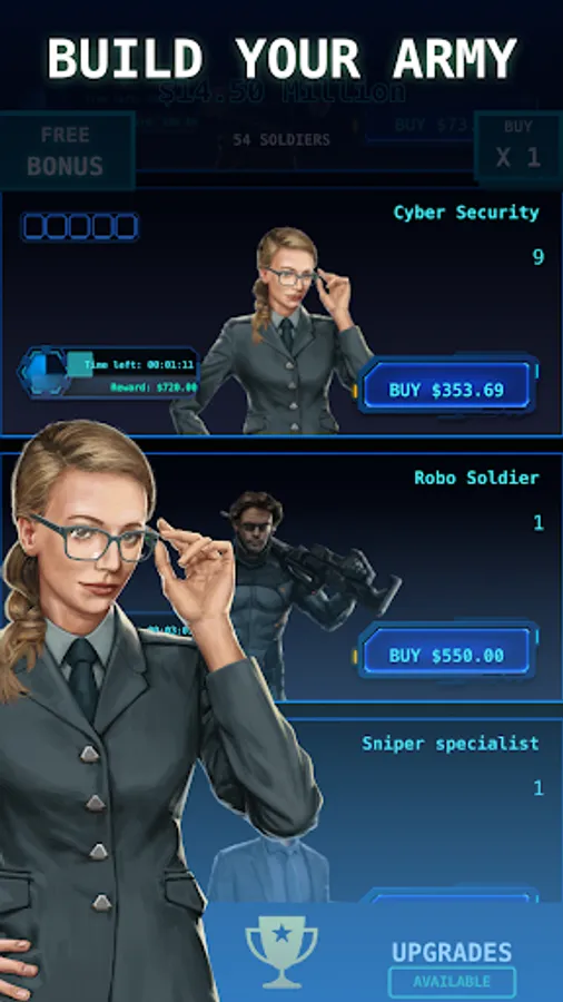 Final Strike is a military themed ilde clicker game, also referred as cookie clicker game. The goal of the game is it to build up the biggest army by accomplishing missions and getting rewards and bonus rewards for achieving the mission goals.