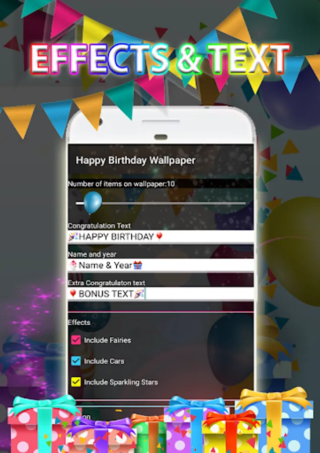 Simply set your own message and choose the effects you want and you got a personalized wallpaper for the person in mind.