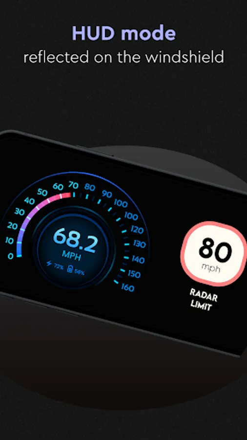 The app also provides HUD (Head-Up Display) to help you keep your eyes on the road. You can easily and safely drive with the HUD function of the app. Your current speed, the speed limit on the road, and radar points will be mirrored on the windshield of the car so that you can easily track them and keep your eyes on the road.