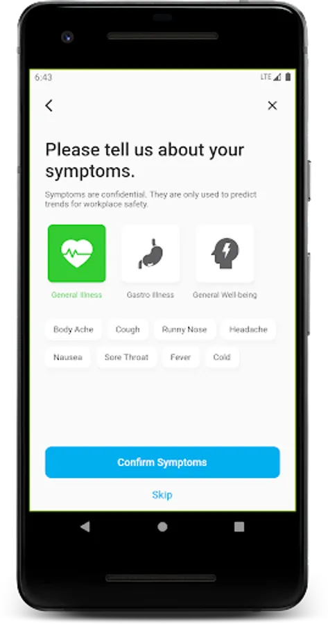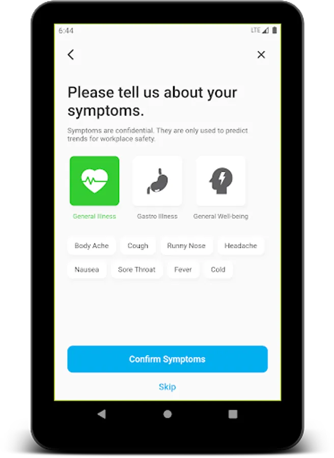 • Allows workers to easily report their absences, reasons for absence and symptoms