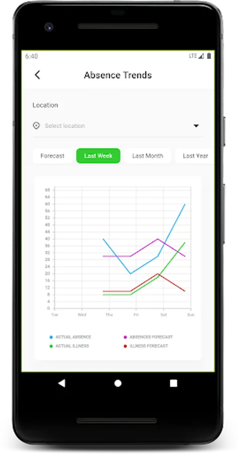 • Provides past absence trends and forecasts of future absences at the team or location level