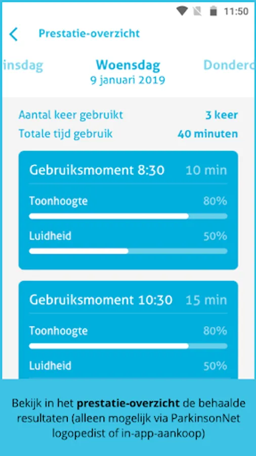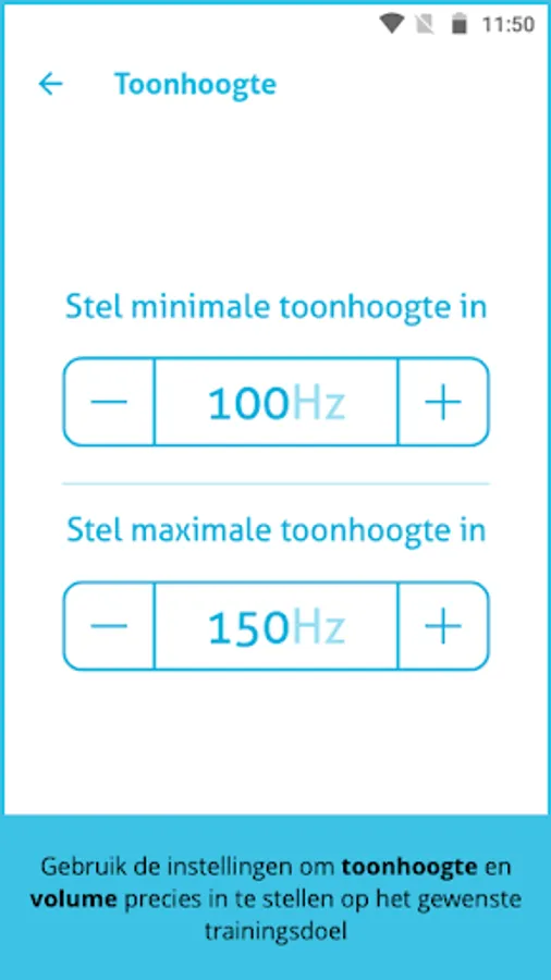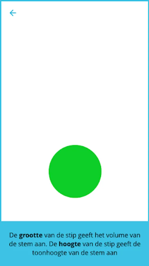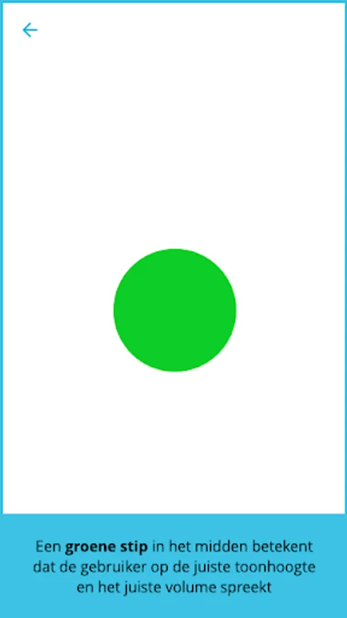 The Voice trainer continuously displays visual feedback on both the loudness and the (speech) pitch of the speech with one dot on the screen, so that you can immediately see which aspect needs to be adjusted. You can use the app to practice your speaking technique more easily, but also to check if you speak well during conversation. It is the intention that you set the optimal loudness and pitch together with your speech therapist.