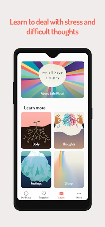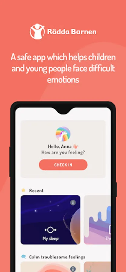 Safe Place is an app for children (13+) and young people with a focus on strengthening mental health. Safe Place offers both concrete exercises that can help the body, emotions and thoughts to calm down in the moment and that can also be helpful in the longer run.