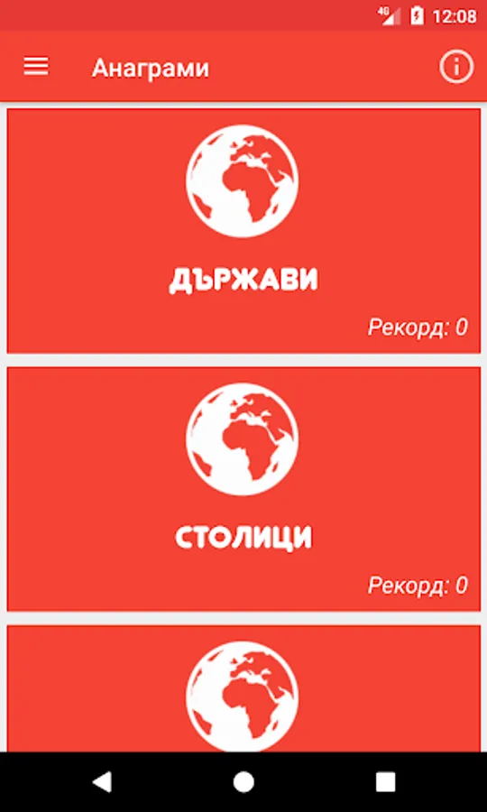 Анаграми е много лесна игра на думи. Изберете категория за да започнете играта. Всяка категория съдържа разнообразни думи в областта. Играта ще ви показва дума след дума с разбъркани букви, а вашата цел е да наредите правилно буквите за да се получи търсената дума. След познаване на думата, ще можете да продължите към следващата. Всяка позната дума Ви носи точка. Целата е да познаете възможно повече поредни думи, за да направите рекорд. Ако не успеете да познаете някоя от думите, ще трябва да започнете от начало, като текущия Ви рекорд ще се запамети. Всяка категория има собствен рекорд за подобряване. При вписване в играта ще можете да сравните вашите резултати с най-добрите резултати на други хора. Успех!