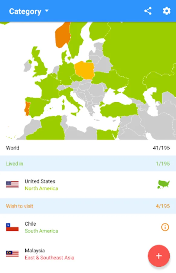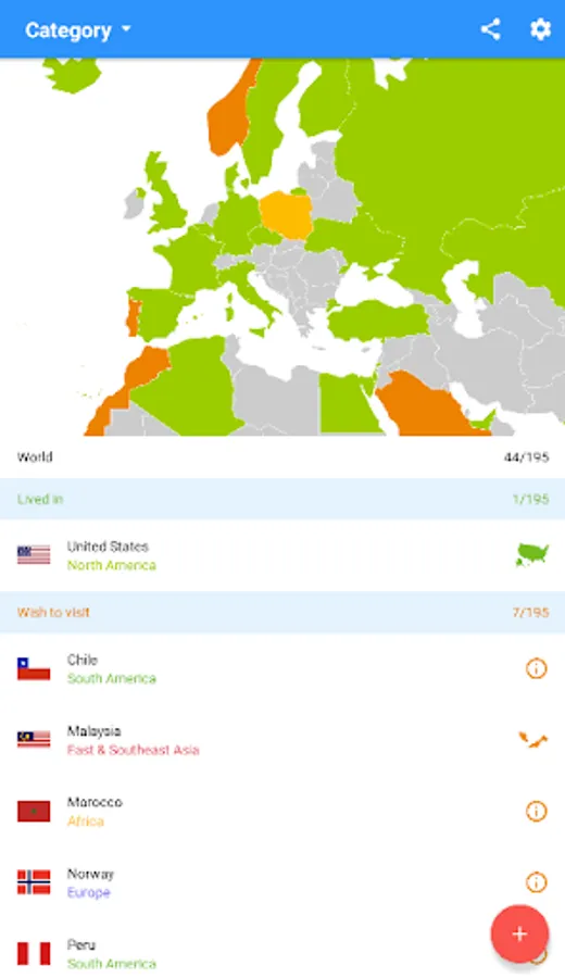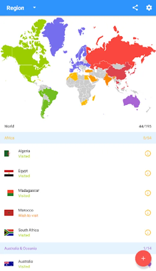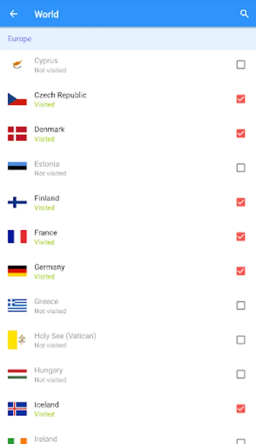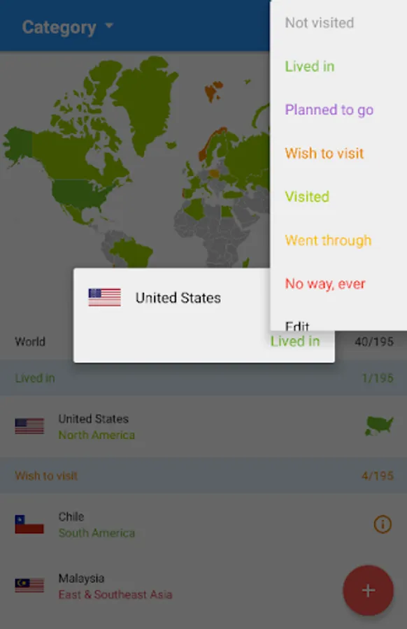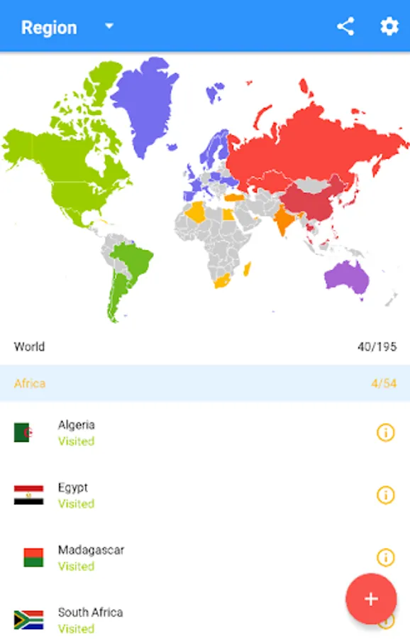- mark and add the visited countries and regions