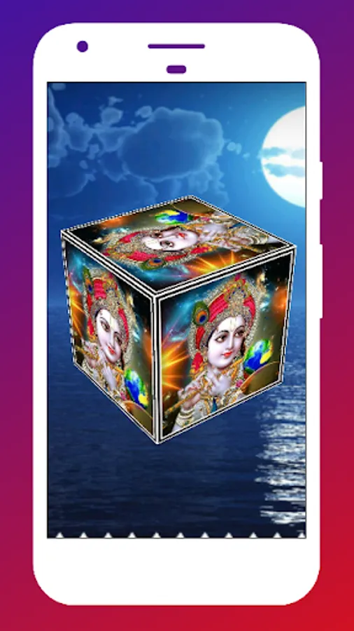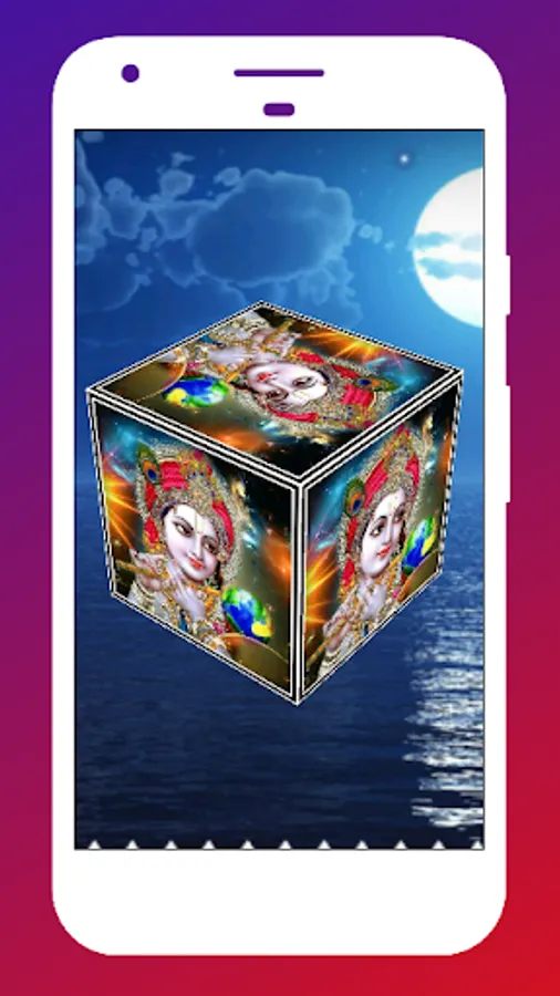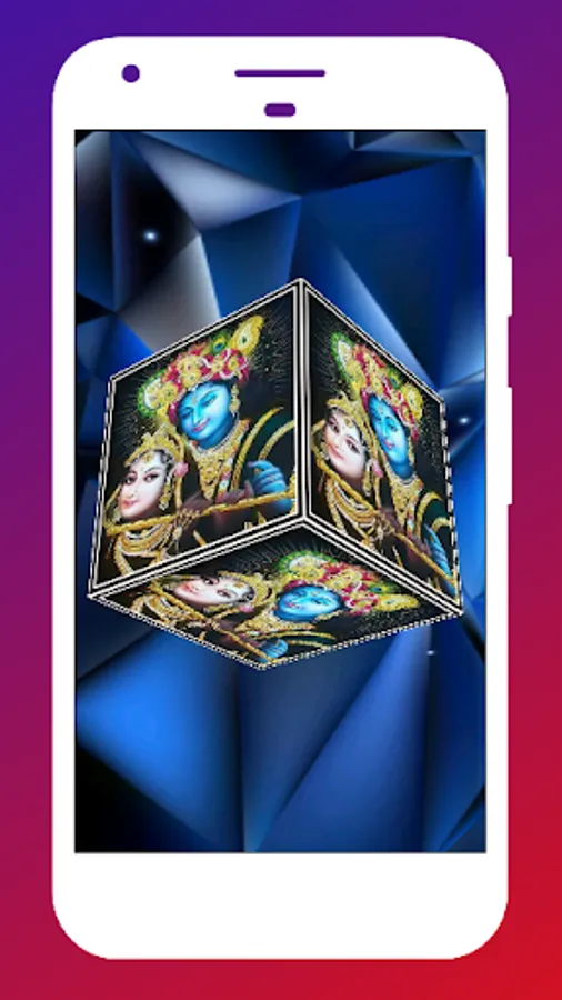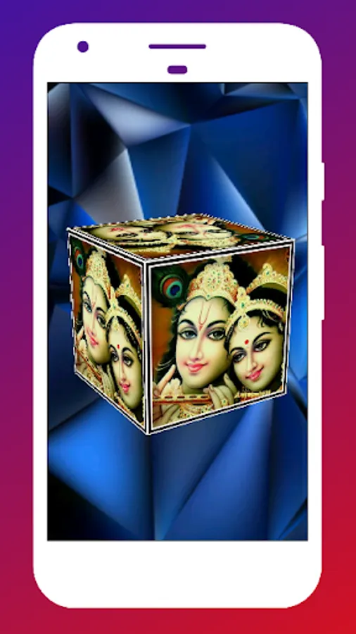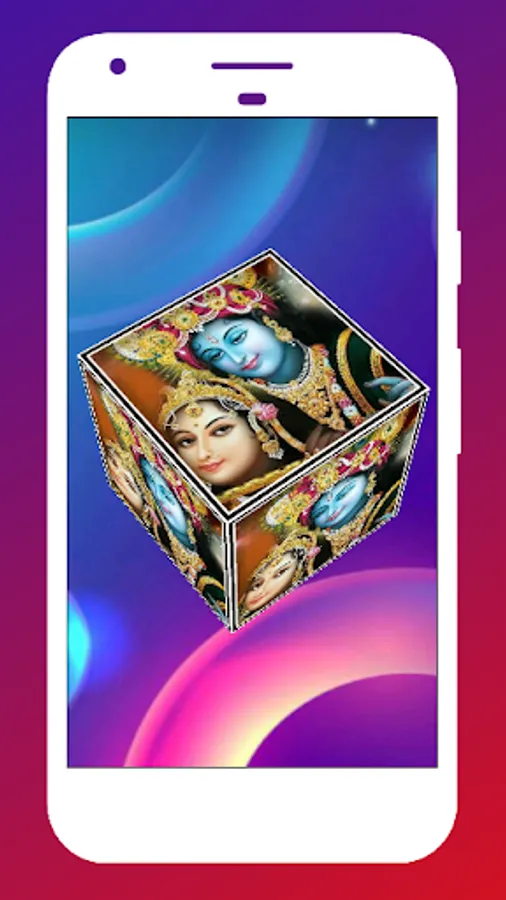 This App have radha krishna 3d live view where a cube with six faces is rotating continuously. User can change the cube size from small to medium, small to large or medium to large.