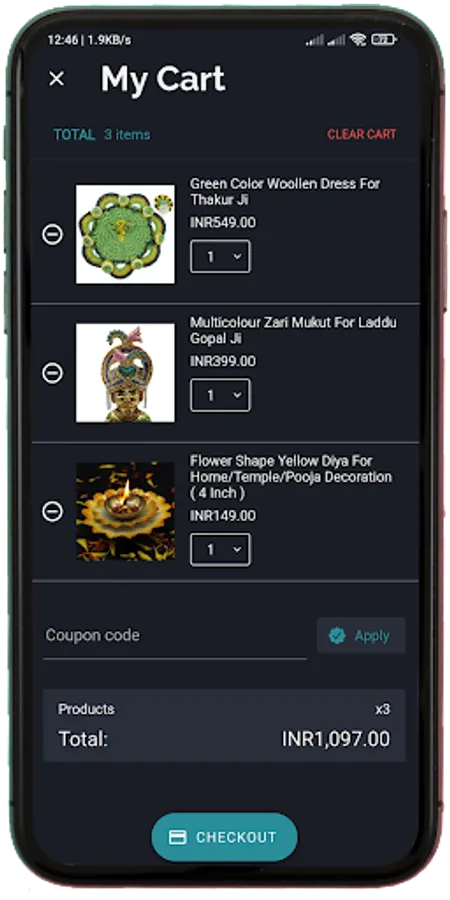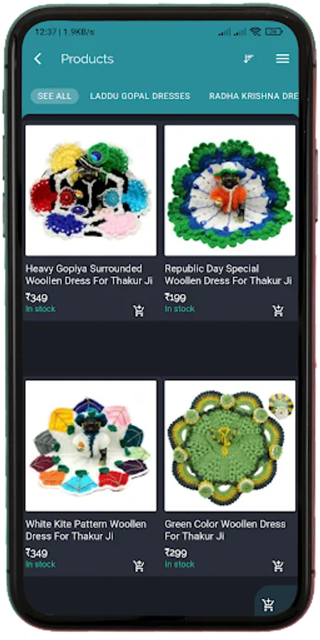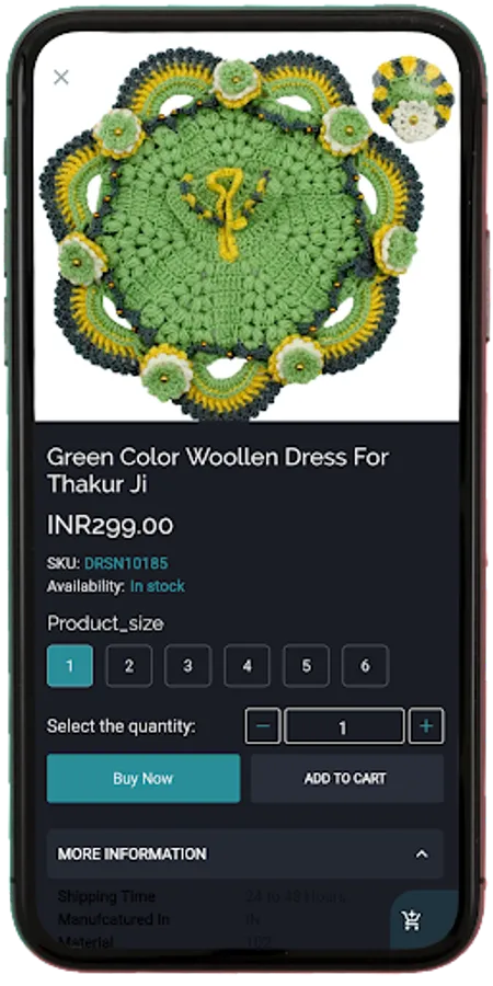 MyKanha provide you variety of products such as God Dresses, Laddu Gopal Accessories & Laddu Gopal Shringar and specially a huge range of Designer Laddu Gopal Dress, Designer Radha Krishna Dresses , Durga ji Dress, Jagannath ji dress, Laxmi Ganesh Dress. Now get all your relogious product at your doorsteps. Simple steps for online purchasing.
