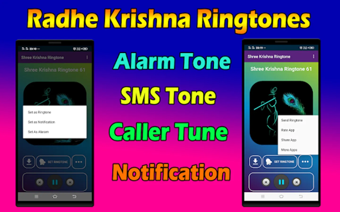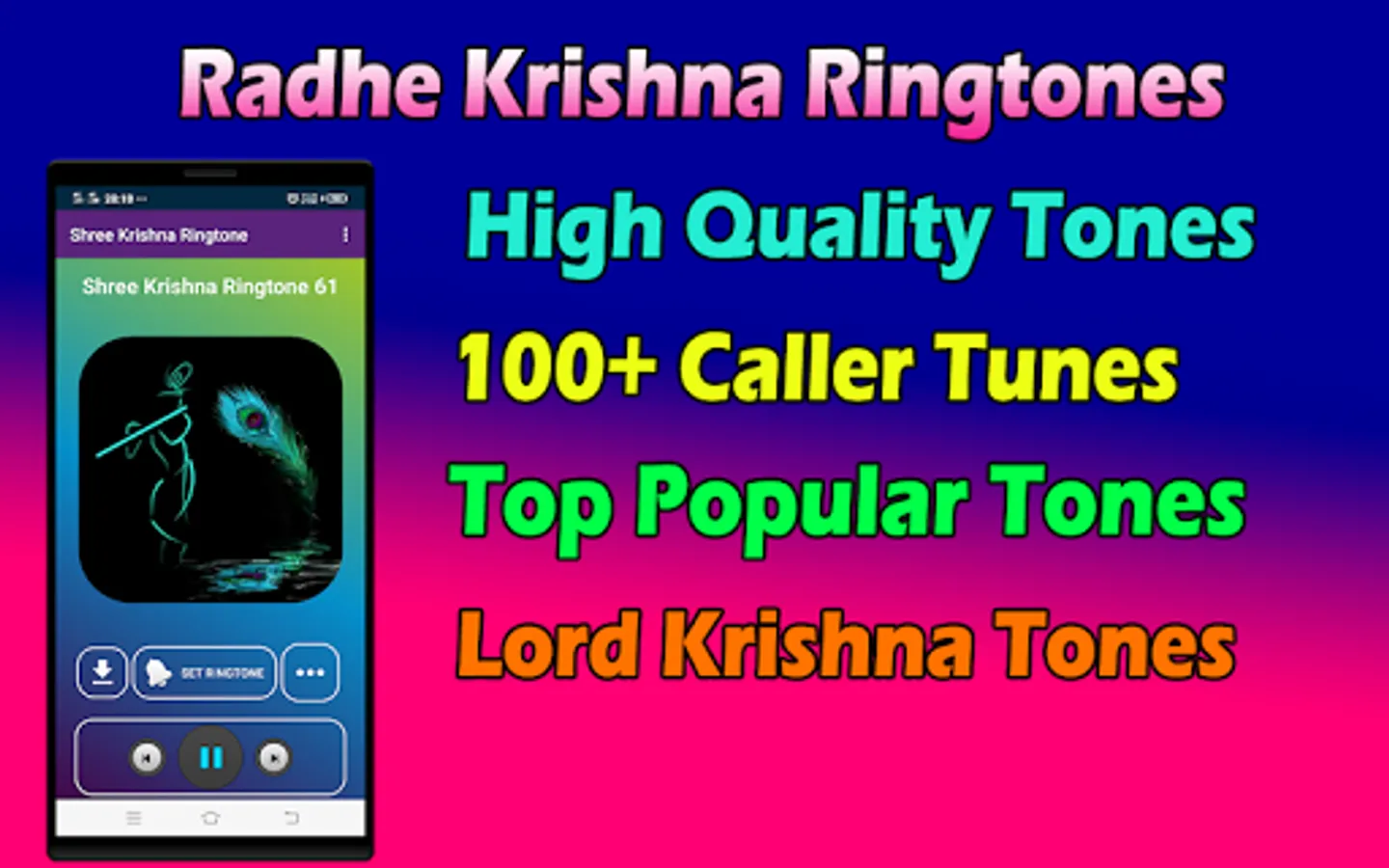 Get all collection high quality ringtones of shree radhe krishna like hare krishna ringtone, hare rama hare krishna ringtone, jai shri krishna ringtone, krishna flute ringtone, krishna stuti ringtone, Radha krishna aarti ringtone, krishna hindi bhajan ringtone and other gopala ringtones, Best Krishna Ringtones .
