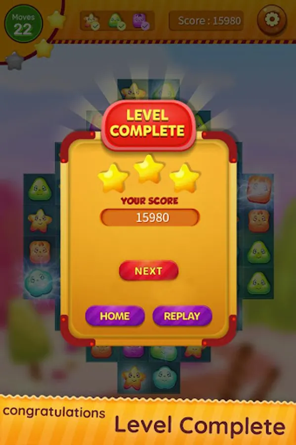 Use fewer moves and more combos of special candies to get more stars; more score in the level after complete your target.