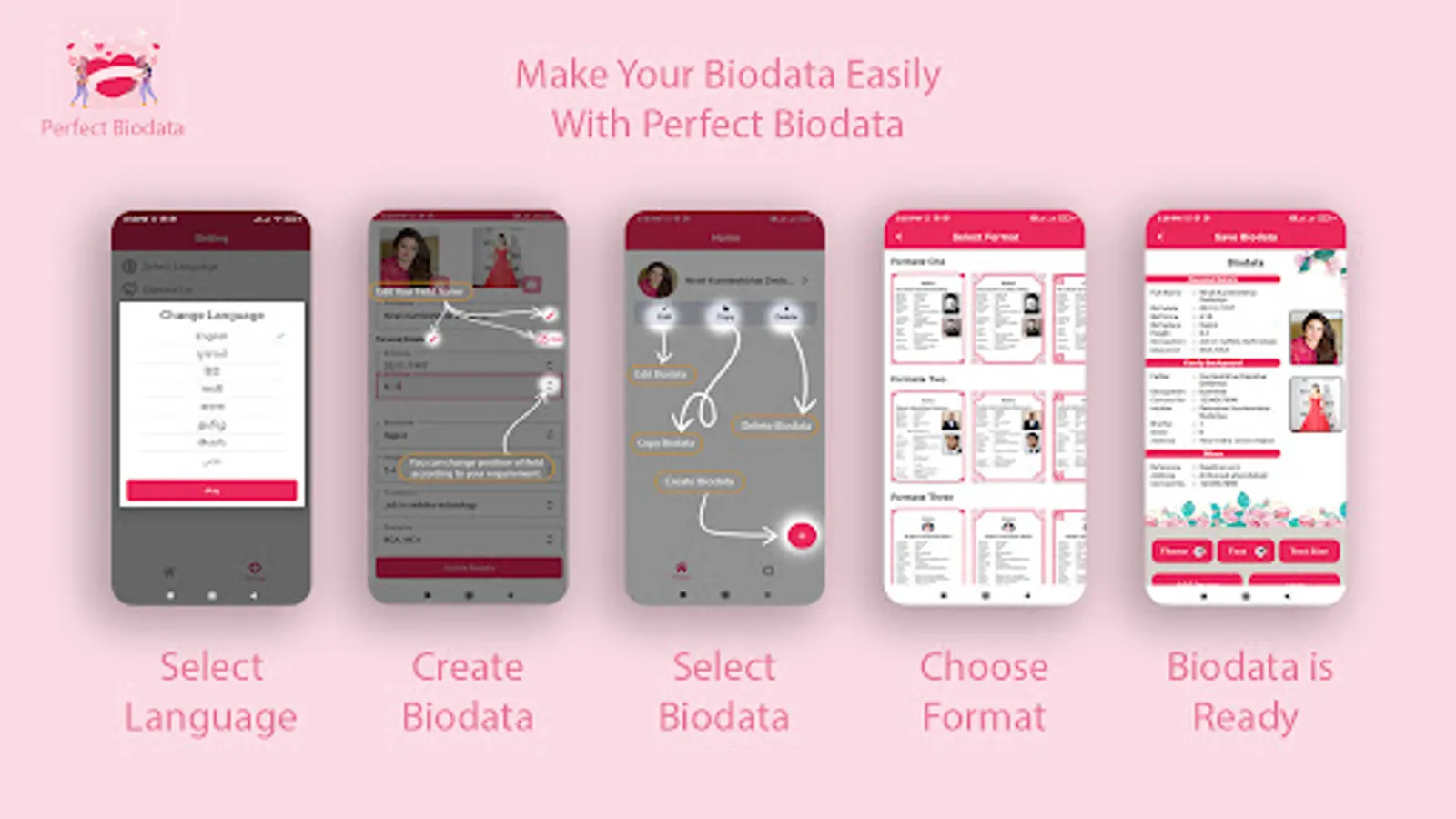 In app you make an easy and do it yourself approach in writing a good professional resume. Follow our app steps and check against the points and you shall end up writing a clear and beautiful biodata for marriage proposal.