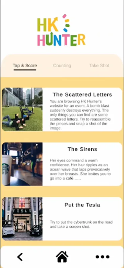Player needs to solve the riddles and scan the secret images to trigger the AR missions. For each mission, player need to play a mini game and snap a picture.