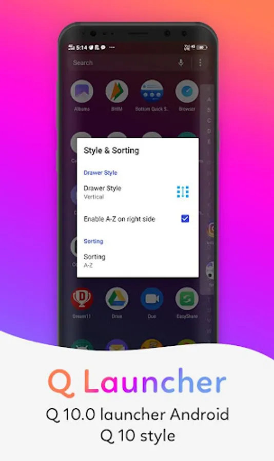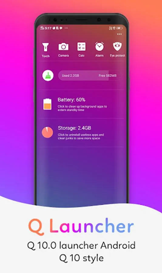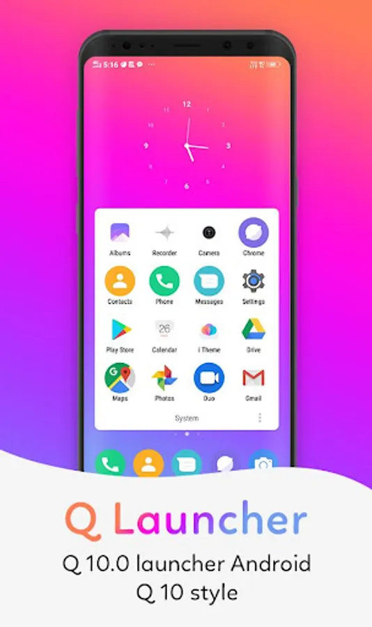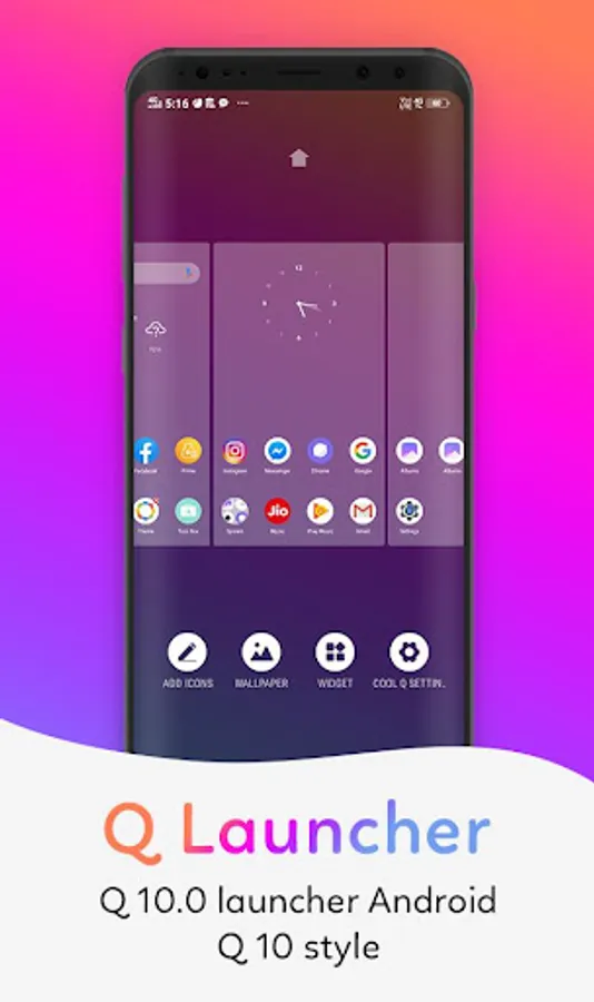 Q Launcher – Launcher Theme For Q Theme, UI 10 style with many valuable features, cool themes, beautiful wallpapers; Launcher Theme For also have many options for you to config your phone as you like.
