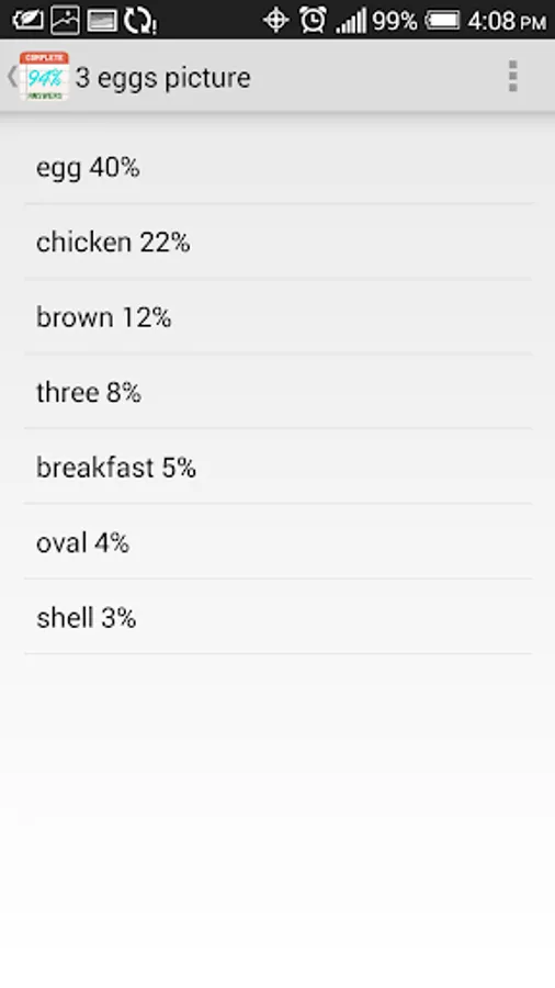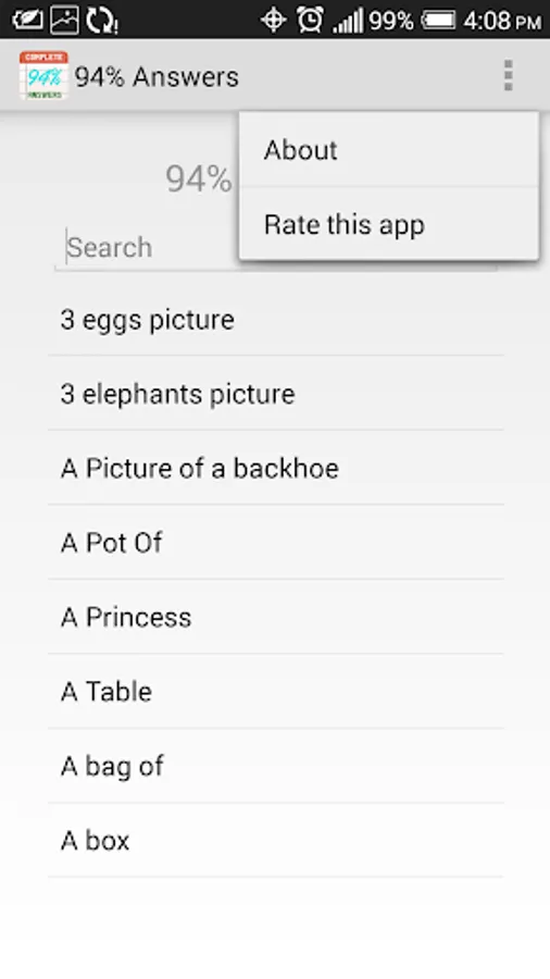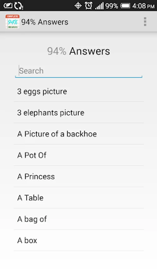If you find any problems or do not want to get too tired, when you play this game. This app can help you find the answers to 94% questions. Game is for enjoying but a lot of difficulties can end up loosing your joy in playing the game. 94% Answers is a complete guide for the questions of 94% game. The app is exclusively developed by radiations3.com unofficially to help you explore the game and enjoy it. This app has following amazing features: