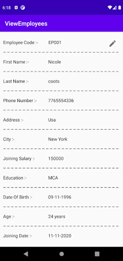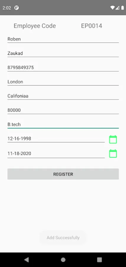 Developed and designed for employees as well as employers, this Employee Management app eliminates the need of keeping written records and maintaining a register for storing the details of your employees. As an employer, it empowers you by providing an easy and effective way of managing the details of all your employees. This app is great for companies and organizations where a lot of employees are on the go. You can access all the details of every single employee of your firm using this app as all their data is stored under a single roof. As an employee, you need to register by filling the details such as first and last name, contact number, address, education, joining date, and more. A new employee code is created for every new employee that registers the app. This employee management app is very fast and saves a lot of time for Employers as they can any time access the details of every employee just by clicking the View Employee button. It is a complete Employee Management app that will simplify your work.