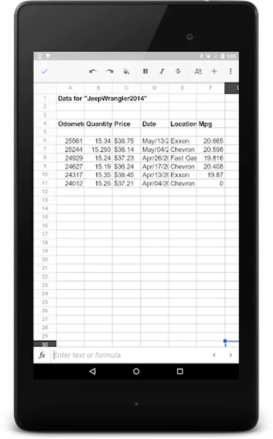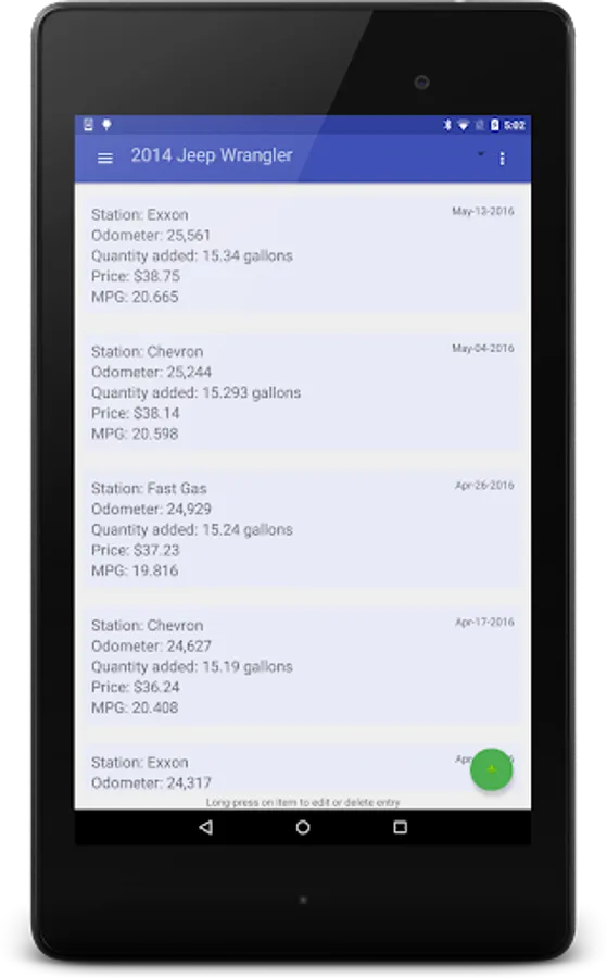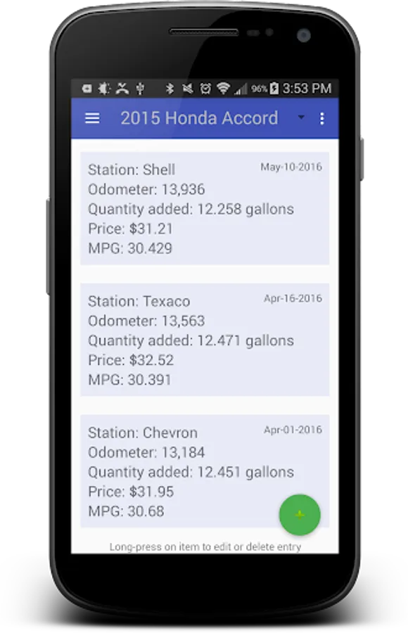 Simple app for tracking and calculating mileage performance on all your cars, trucks, vans, motorcycles, and mopeds. Simply add some quick data and the app will calculate your mpg, create a trend line graph of mileage, keep a log of all entries, provide a quick readout of statistics, and allow the user to email a spreadsheet of all collected data to themselves or others. The spreadsheet is editable on your desktop or laptop computer. This makes it highly useful for your own further manipulation such as employee reimbursement or tax purposes.