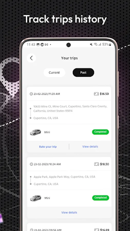 Rapid live updates regarding the trip details including arrival and confirmation of the trips