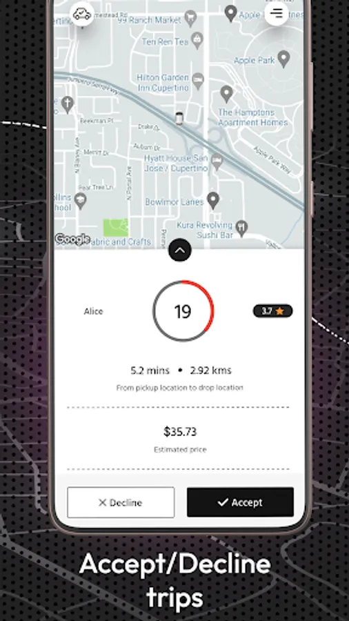 Driver receives their pay either by cash or through their bank account with Stripe connect.