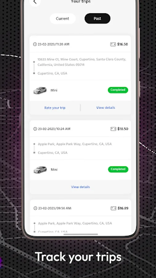 Search and select pick-up and drop location instantly with the location suggestions while typing.