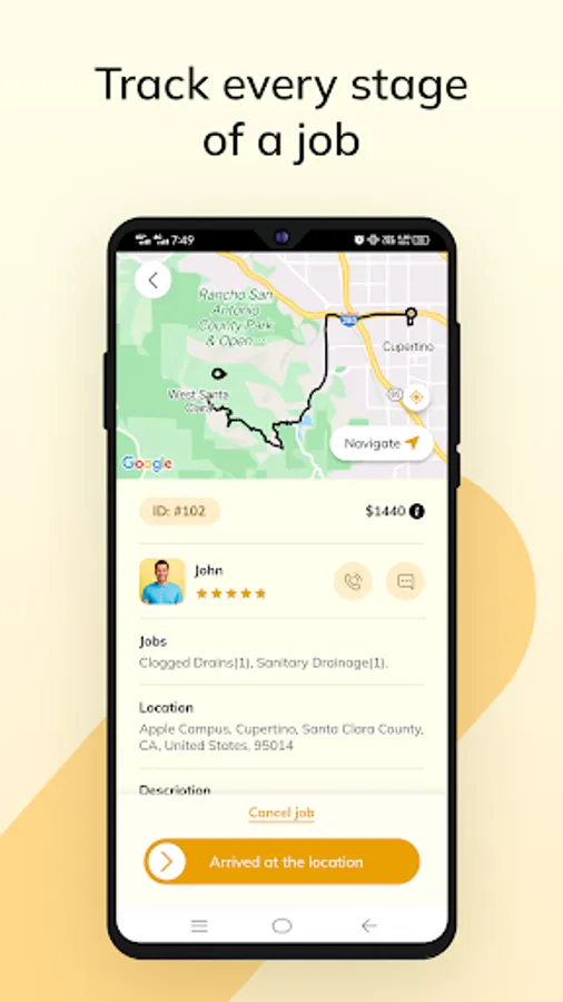 7. Track and update the service status [Start/Stop/Pause service] using a timeline within the app.
