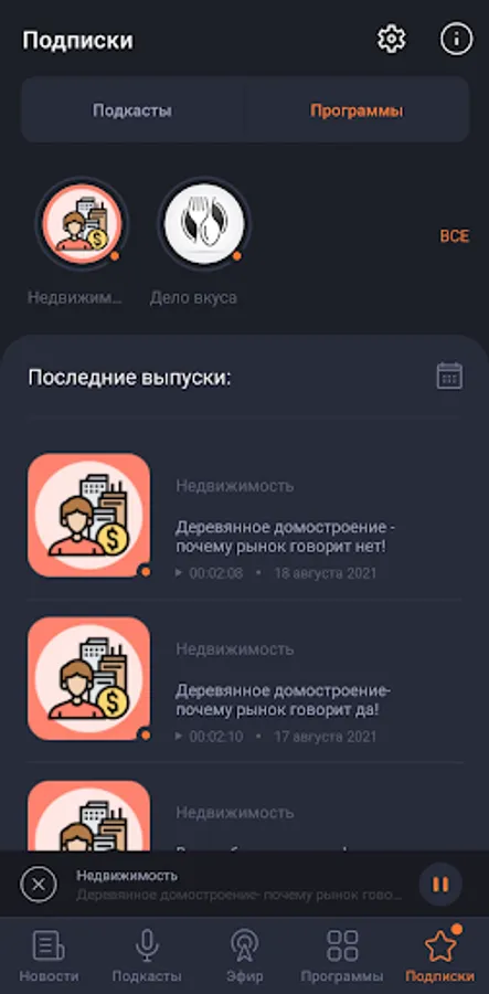 Listen to podcasts and programs, subscribe and share them.