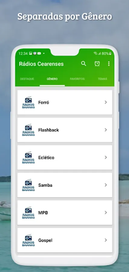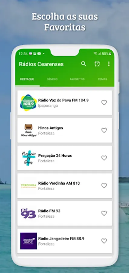 In it you listen to the online radio from all over the State of Fortaleza in the various categories such as Ax, Pop, Rock, Gospel, Football, Country, Forró, Sports, Journalism, Catholic, Eclectic and Community.