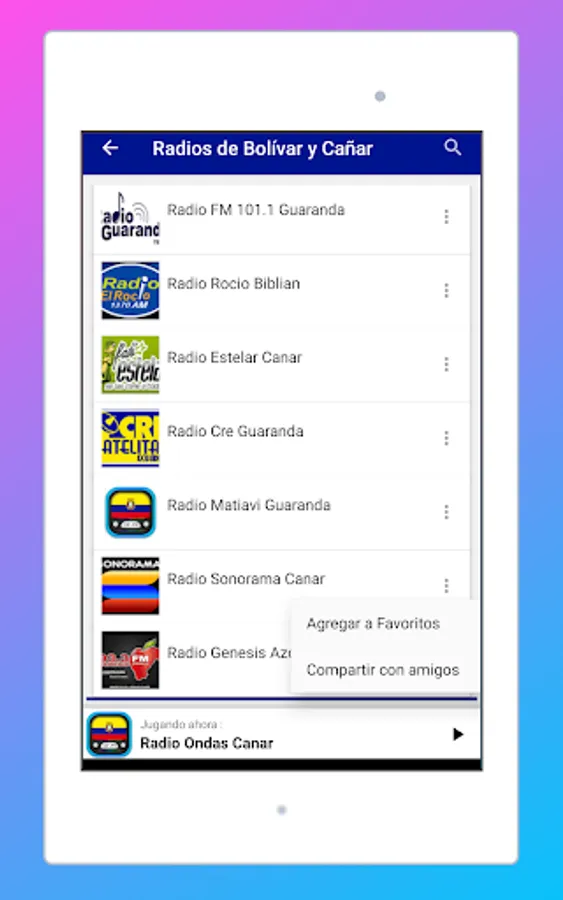 The best app to listen to Ecuadorian radio station is here! Now you can listen to live radios on the phone with internet connection from all over Ecuador, they are all here. There are even local live Ecuadorian radio stations like Quito and other Ecuadorian cities.