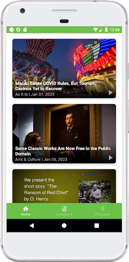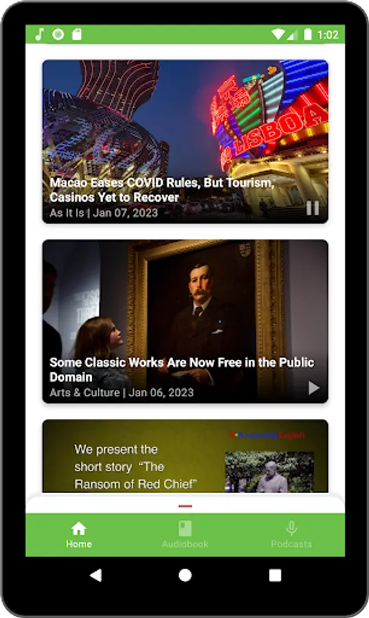 - The contents are updated daily includes news, stories, lessons with audios and videos.