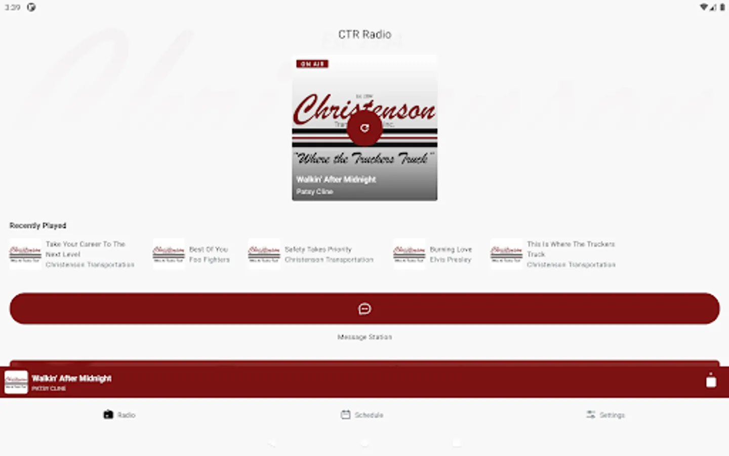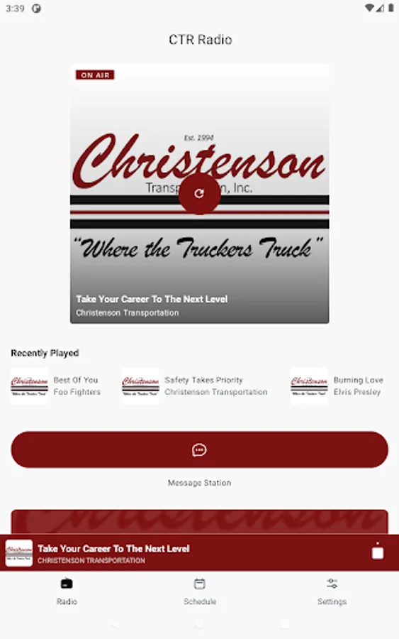 Welcome to the official internet radio station of Christenson Transportation (Springfield, MO / Lebanon, TN / Ethridge, TN). Listen for industry and company updates along with the best music ever made! We are always hiring drivers!