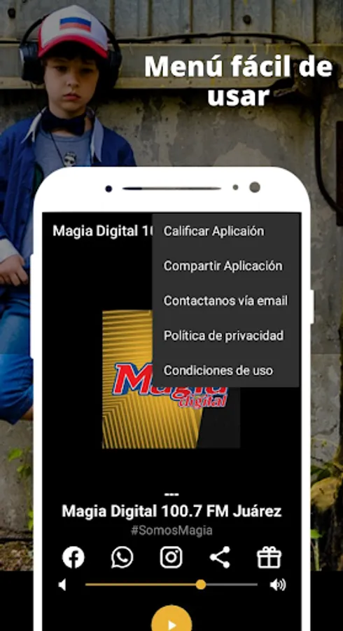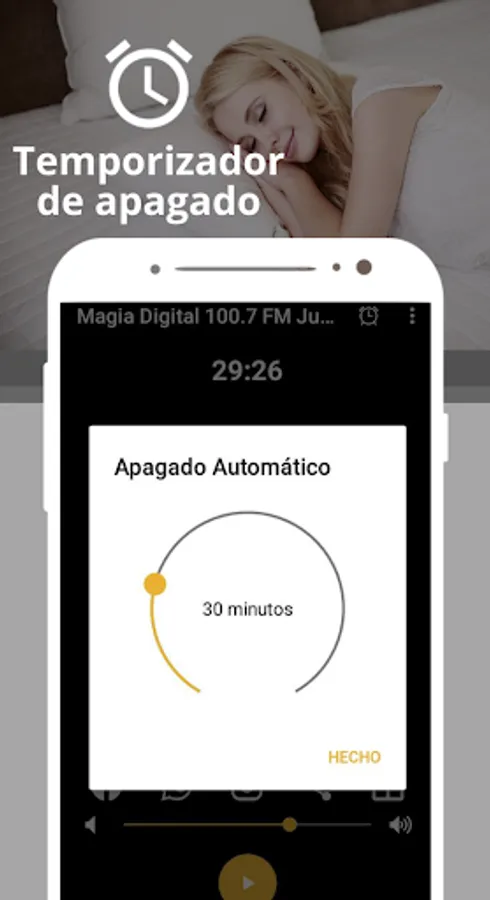 Our Digital Magic 100.7 FM Juárez application has a very nice design and a very easy-to-use menu. It also has an off timer with which you can program the time in which the radio turns off.