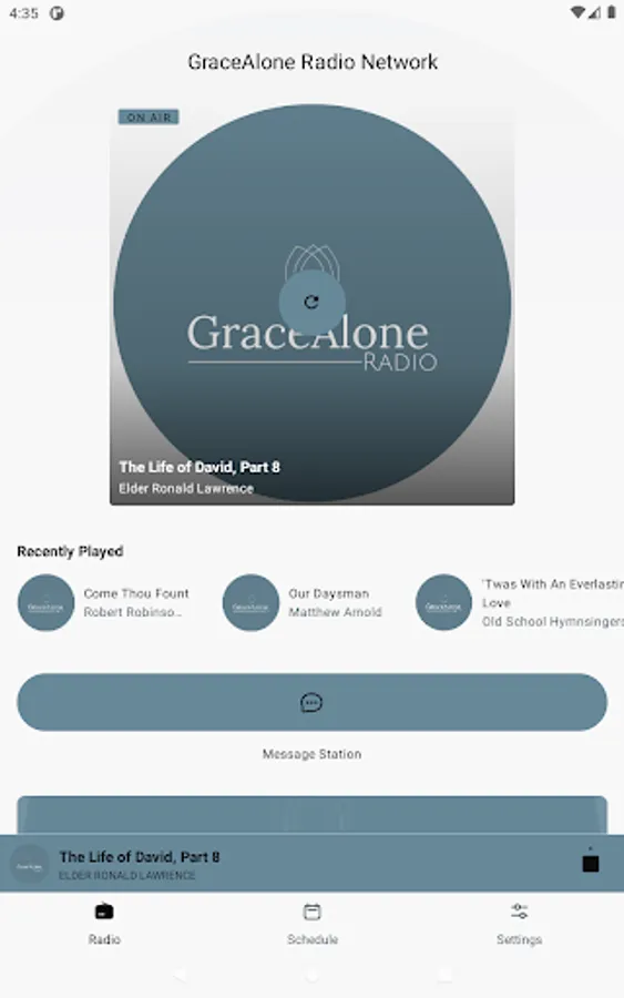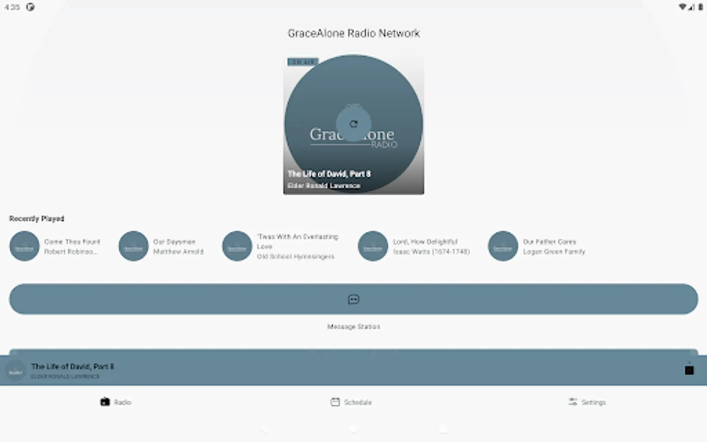 GraceAlone Radio offers a 24-hour Christian radio stream with a theological emphasis on the message of God's sovereign grace. The daily schedule features faithful Bible teaching from a number of capable Primitive Baptist pastors, Acapella hymn singing, daily Bible readings from the KJV, and more.