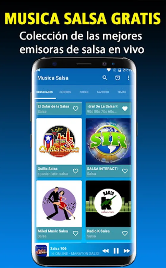 Musica Salsa Gratis so you can enjoy your salsa brava from different performers of the genre and the best salsa radios from different countries around the world.