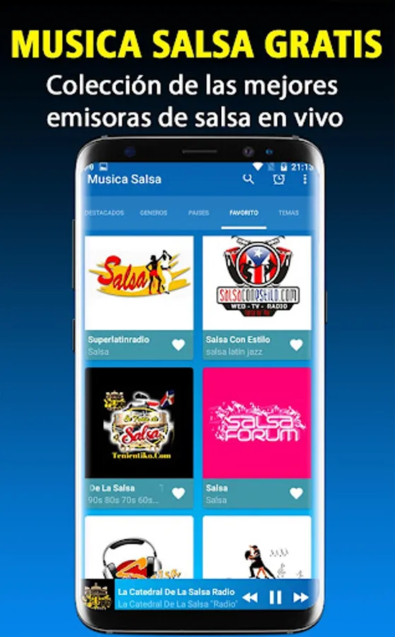 Salsa Brava with a modern and elegant interface, you also have the option to select super-fast access to your favorite radios.