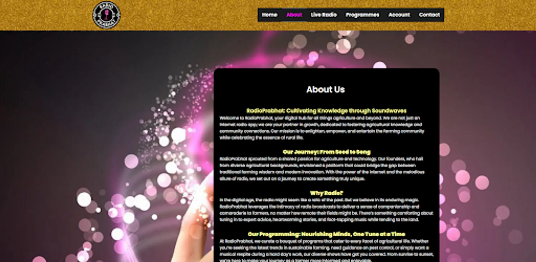 RadioPrabhat sprouted from a shared passion for agriculture and technology. Our founders, who hail from diverse agricultural backgrounds, envisioned a platform that could bridge the gap between traditional farming wisdom and modern innovation. With the power of the internet and the melodious allure of radio, we set out on a journey to create something truly unique.