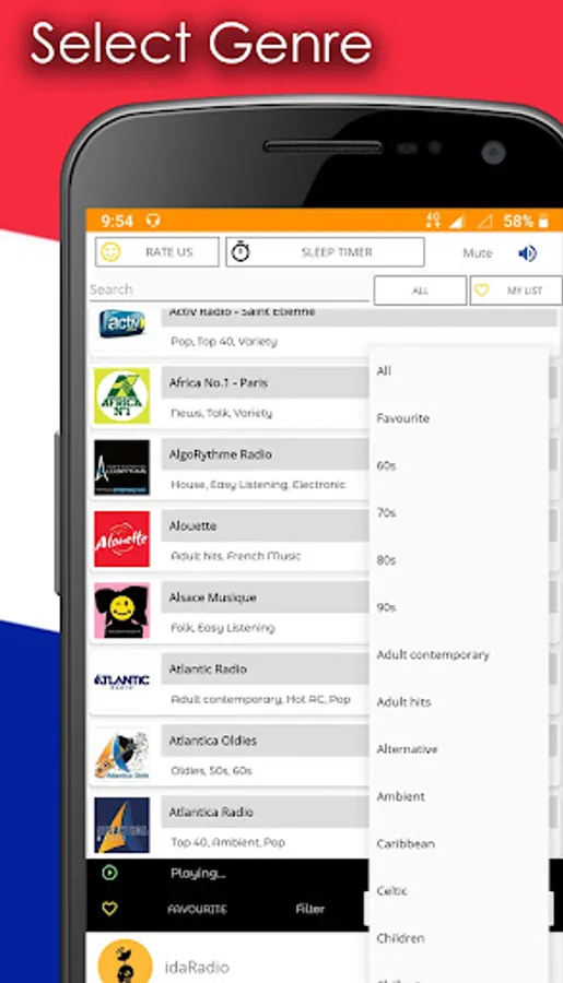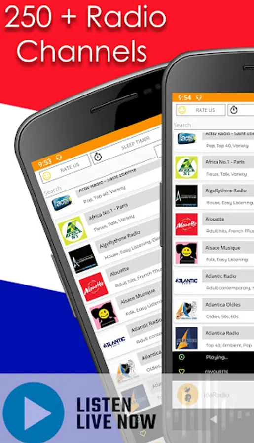 Listen to top French Music, Sports and News on your device.