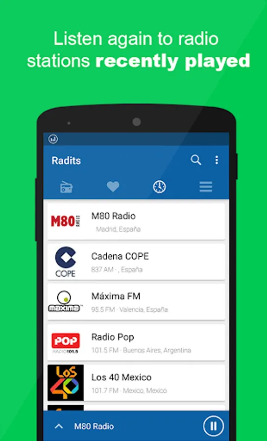 • Listen your favorite radio while you go to bed - without worrying about exhausting your Mobile data.