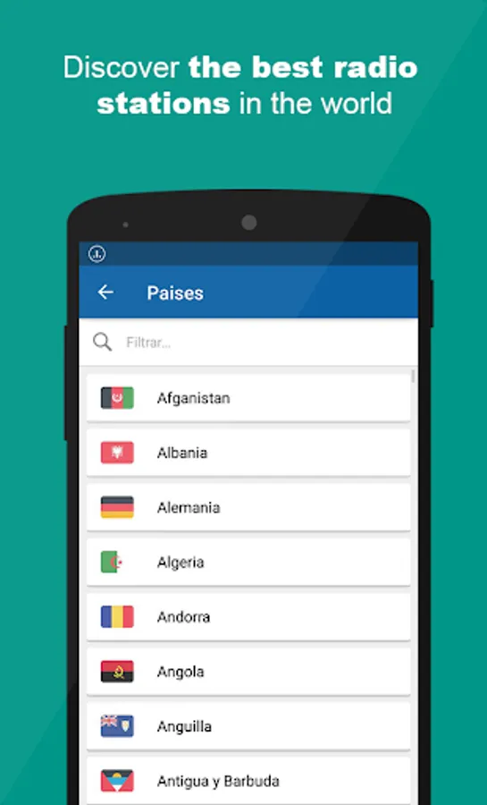• Countries list (Select country and touch the Radio Station)