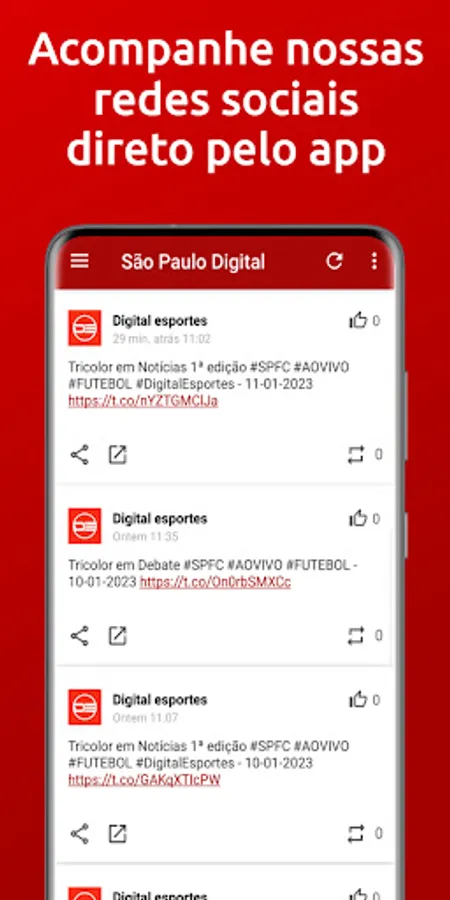 • Transmission of Rádio Digital Esportes programs, such as Tricolor em Notícias and Tricolor em Debate;