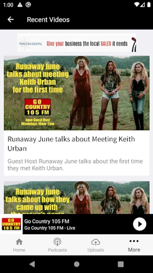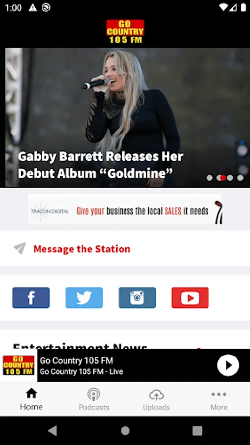 Go Country 105.1 is So Cal's Country Station and the #1 Country Music Station in America! We play the best in country music. With the latest version of the Go Country 105 app you can tune in for the best that Go Country 105.1 has to offer. Just download and open your Go Country 105.1 app to get a live feed of what’s playing, and everything else that’s played over the past hour. You can tap an item in the feed for details. Then, interact with great features like: Rate music you like Discover new music Get special offers Enter contests And more. You decide when you want to listen, and when you want to browse by turning the live stream off or on within the app. Get what you want off the radio with the latest Go Country 105.1 Radio App.