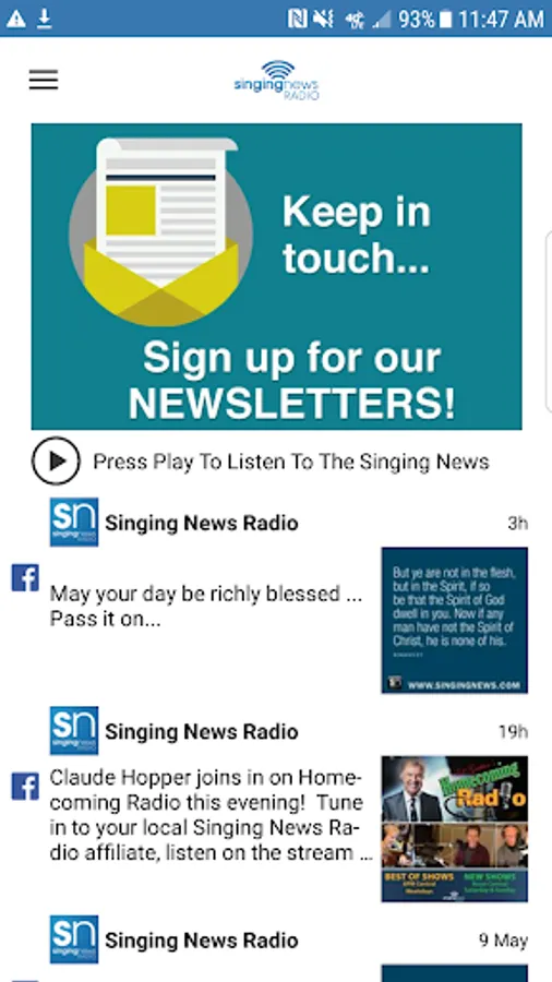 Singing News is the voice of Southern Gospel Music! With the new Singing News Radio App you can feed your appetite for the best that Singing News has to offer.