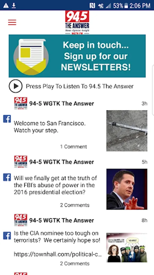 The 94.5 WGTK The Answer App is your station for breaking news and stimulating talk!