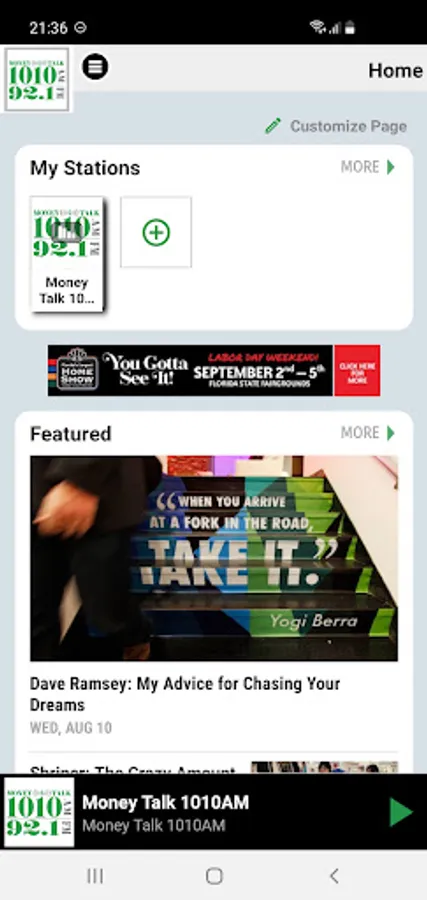 You decide when you want to listen, and when you want to browse by turning the live stream on or off within the app. Get what you want off the radio with The new MoneyTalk 1010 AM app.