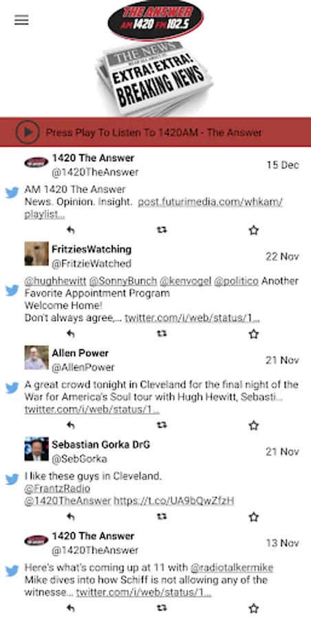 AM 1420 The Answer is your station for news, opinion and insight! With the new AM 1420 The Answer radio app you can feed your appetite for the best that AM 1420 The Answer has to offer.